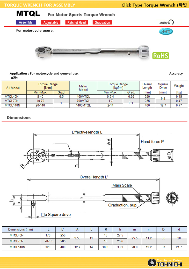 [TOHNICHI/Åä´ÏÄ¡] MTQLÇü ÅäÅ©·»Ä¡(MTQL, ¿ÀÅä¹ÙÀÌ¿ë, ´Ù¾çÇѸ𵨼±Åð¡´É)(Motorcycle Torque Wrench)
