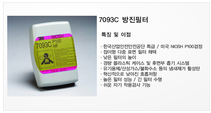 [3M] ¾ç±¸Çü ¹æÁøÇÊÅÍ(3M 7093C, Ư±Þ, NIOSH P100 HF, 6000½Ã¸®Áî ¾Ç¼¼¼­¸®, 1Á¶)