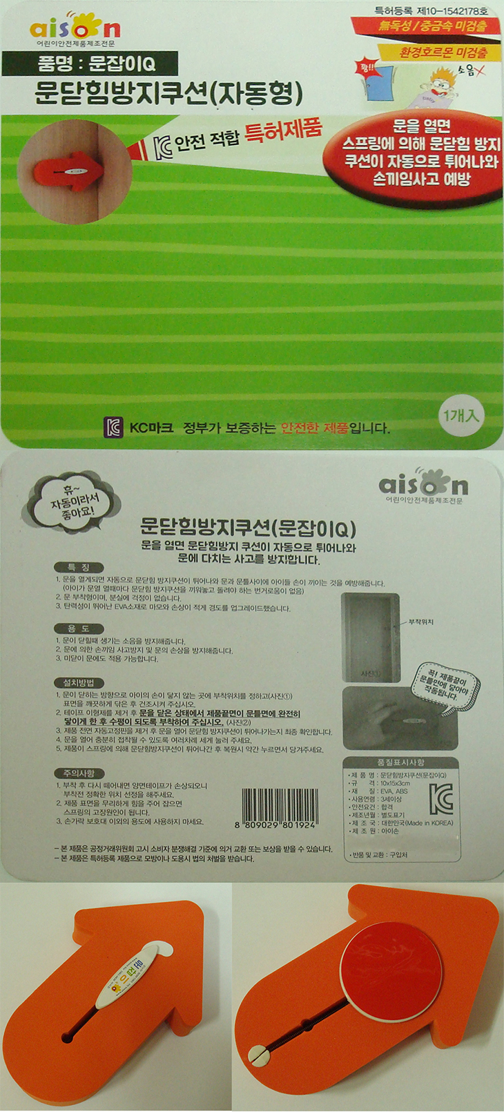 [AISON] ¹®ÀâÀÌ Q/¹®´ÝÈû ¹æÁöÄí¼Ç/¹®ÀâÀÌ(ÀÚµ¿Çü. È­»ìÇ¥, 100x145x27mm, EVA/ABS)