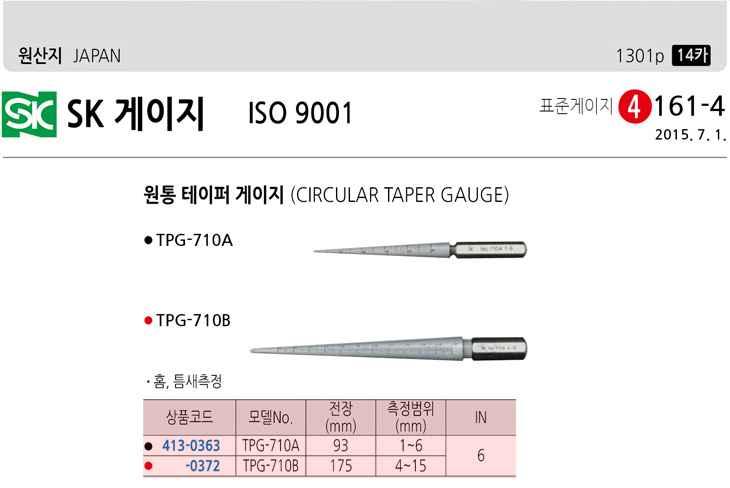 [SK] ¿øÅë Å×ÀÌÆÛ°ÔÀÌÁö(TPG-710B, 175mm, 4~15mm)(Circular Taper Gauge)