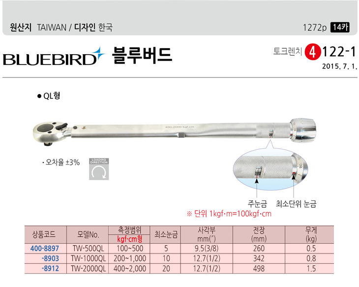 [ºí·ç¹öµå] QLÇü ÀÛ¾÷¿ë ÅäÅ©·»Ä¡(TW-1000QL, 200~1000kgf.cm)(Torque Wrench)