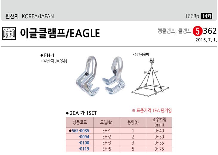 [À̱ÛŬ·¥ÇÁ] EH-1 Hºö¿ë-¼öÆò Ŭ·¥ÇÁ (HORIZONTAL LIFTING CLAMP)