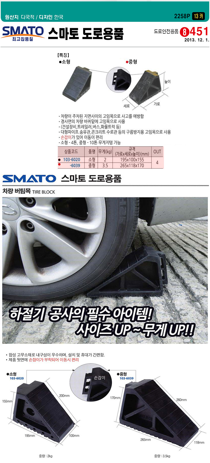 [½º¸¶Åä] Â÷·®¹öÆÀ¸ñ/Â÷·®°íÀÓ¸ñ/ÁÖÂ÷¹Þħ´ë(¼ÒÇü:°¡·Î195x¼¼·Î100x³ôÀÌ155mm, 2Kg)(Parking Tire Block)