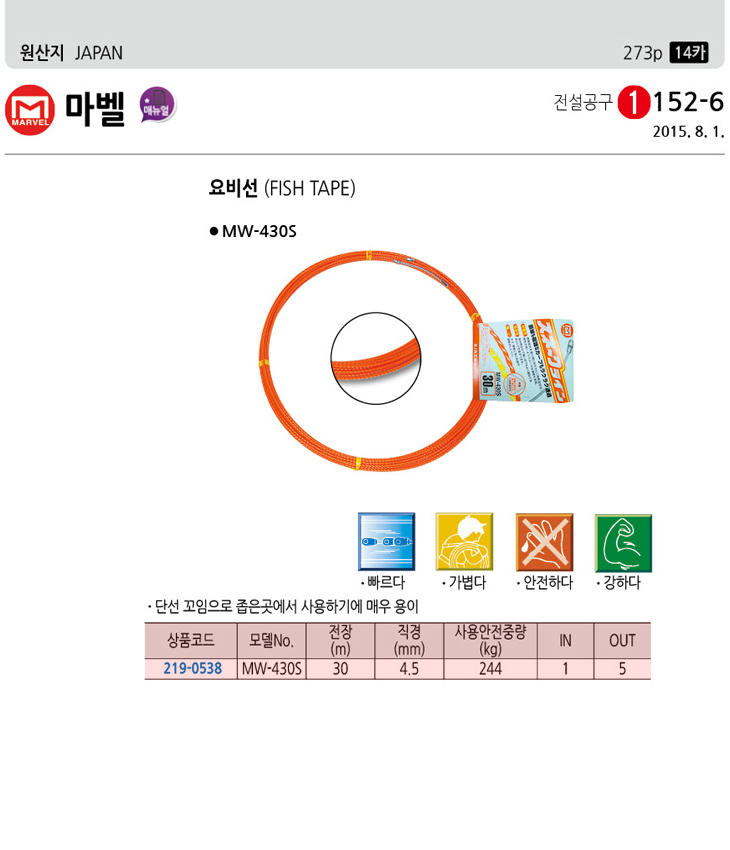 [¸¶º§] ¿äºñ¼±/ÀÎÃâ¼±/³ëºñ¼±/·Îºñ¼±(MW-430S, 30¹ÌÅÍ, 4.5ÆÄÀÌ ´Ü¼±²¿ÀÓ, ¾ÈÀüÁß·®:244Kg, Çü±¤»öÀ¸·Î ¾îµÎ¿î ÇöÀå ÀûÇÕ)(Fish Type)