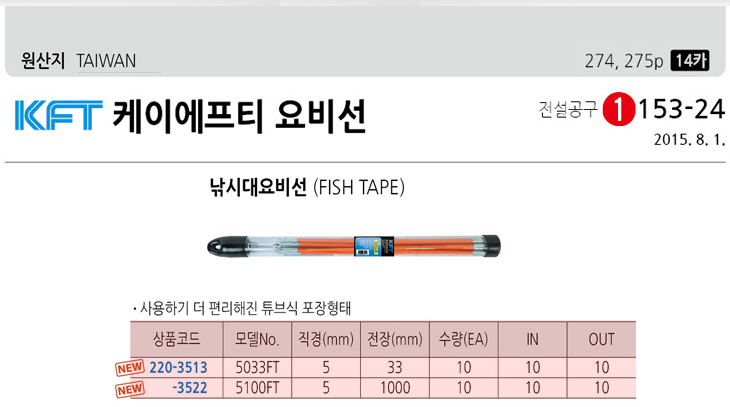 [KFP] ÄÉÀÌ¿¡ÇÁÇÇ ³¬½Ã´ë ¿äºñ¼±/ÀÎÃâ¼±/³ëºñ¼±/·Îºñ¼±(5033FT/5100FT, »ç¿ë¿äºñ¼±:5ÆÄÀÌ)(Fish Tape)