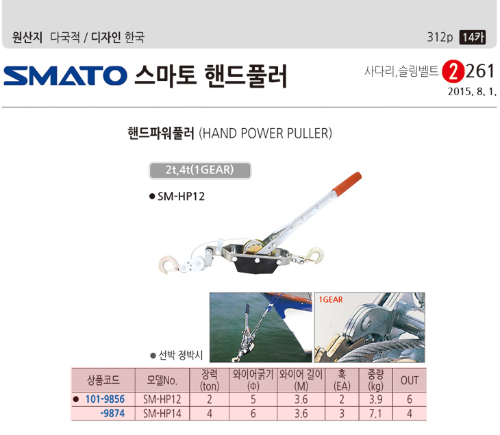 [½º¸¶Åä] ÇÚµåÇ®·¯/ÇÚµå ÆÄ¿ö Ç®·¯(SM-HP12, 2TON, 1Gear, ¼±¹ÚÁ¤¹Ú½Ã)(Hand Power Puller)