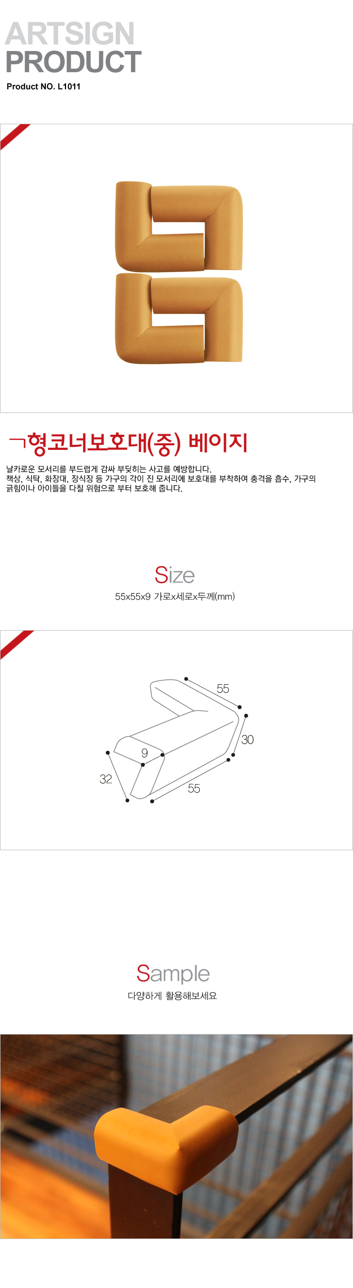[AT] ¤¡ÇüÄڳʺ¸È£´ë(L1011, ÁßÇü, º£ÀÌÁö¿î, 55x55x9mm, 4°³¹­À½)