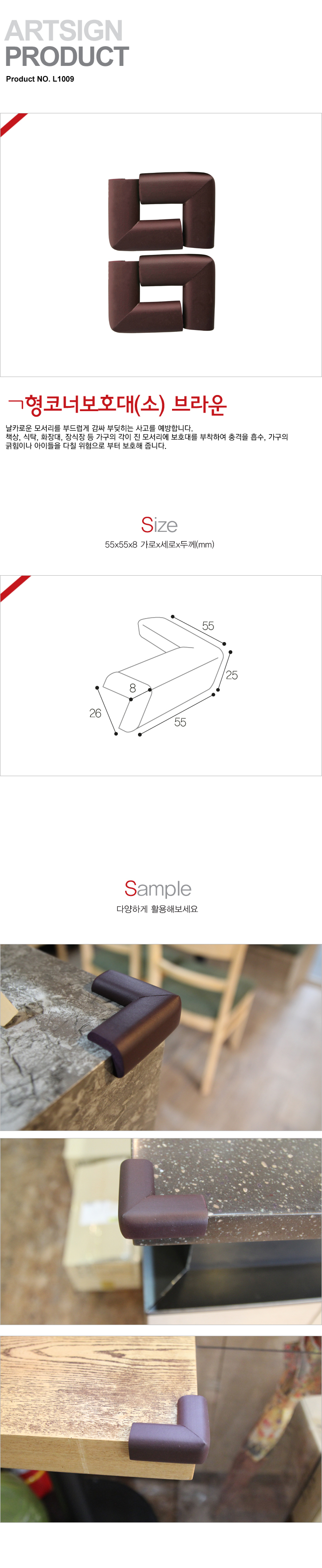 [AT] ¤¡ÇüÄڳʺ¸È£´ë(L1009, ¼ÒÇü, ºê¶ó¿î, 55x55x8mm, 4°³¹­À½)