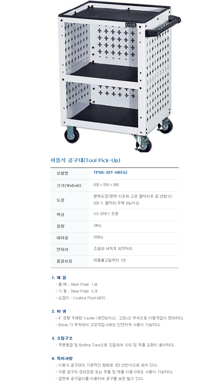 [¿À¼º] À̵¿½Ä°ø±¸´ë/À̵¿Çü°ø±¸ÇÔ(TPU6-3ST-HB, 600 x 500 x 880mm)