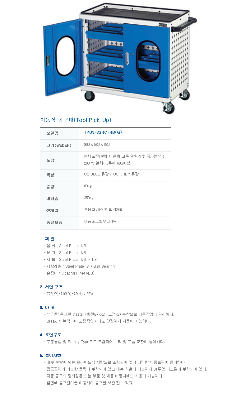 [¿À¼º] À̵¿½Ä°ø±¸´ë/À̵¿Çü°ø±¸ÇÔ(TPU9-3SRC-HB, 900 x 530 x 880mm)