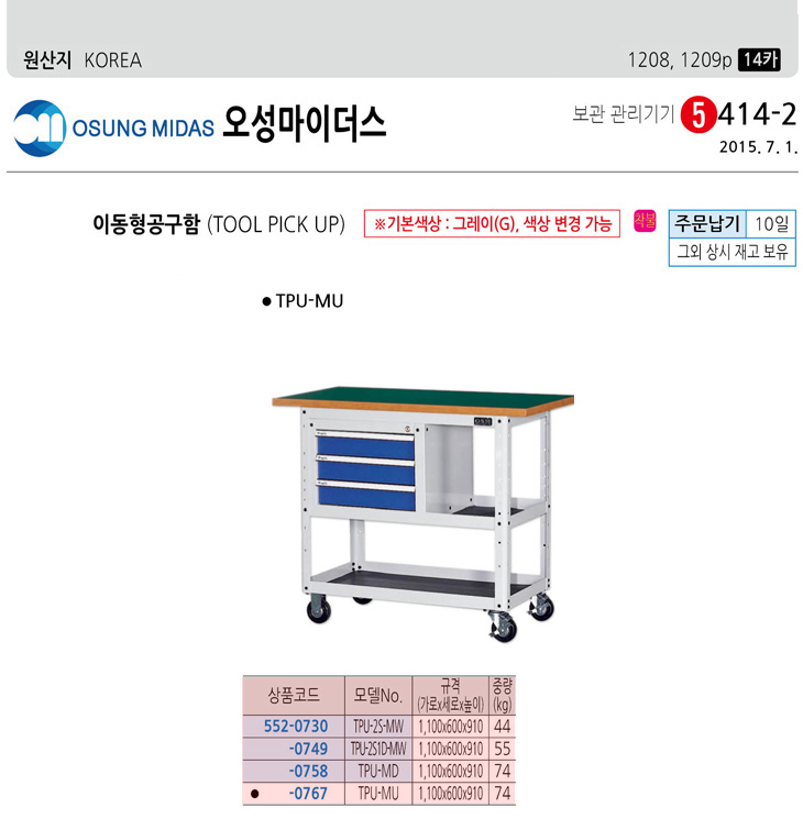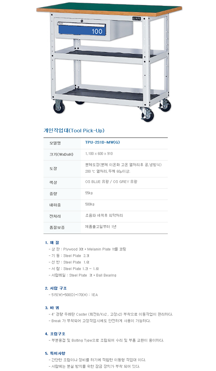 [¿À¼º] À̵¿½Ä°ø±¸´ë/À̵¿Çü°ø±¸ÇÔ/°³ÀÎÀÛ¾÷´ë(TPU-2S1D-MW, 1100 x 600 x 910mm)