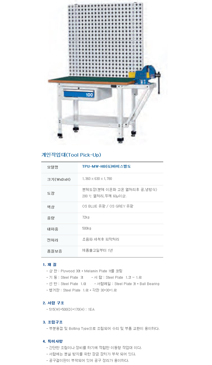 [¿À¼º] À̵¿½Ä°ø±¸´ë/À̵¿Çü°ø±¸ÇÔ/°³ÀÎÀÛ¾÷´ë(TPU-MW-HB, ¹ÙÀ̽ºº°µµ, 1360 x 630 x 1780mm)