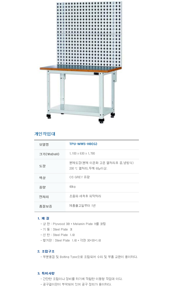 [¿À¼º] À̵¿½Ä°ø±¸´ë/À̵¿Çü°ø±¸ÇÔ/°³ÀÎÀÛ¾÷´ë(TPU-MWS-HB, 1100 x 630 x 1780mm)