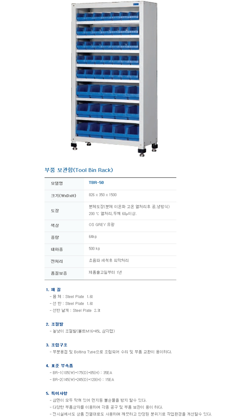 [¿À°ø] ºÎǰº¸°üÇÔ/ºÎǰº¸°ü¹Ú½º(TBR-50, 826x350x1500mm, °íÁ¤Çü)(Tool Bin Rack)