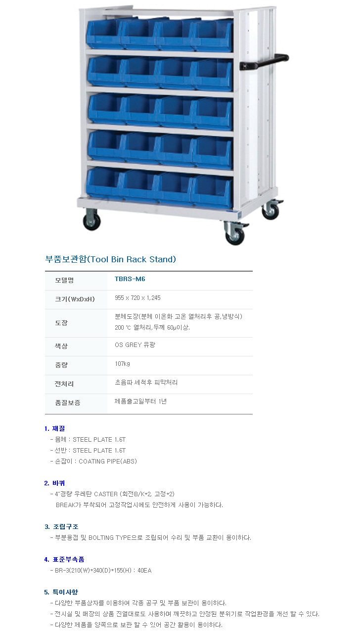 [¿À°ø] ºÎǰº¸°üÇÔ/ºÎǰº¸°ü¹Ú½º(TBRS-M6, 955x720x1245mm, À̵¿Çü)(Tool Bin Rack)