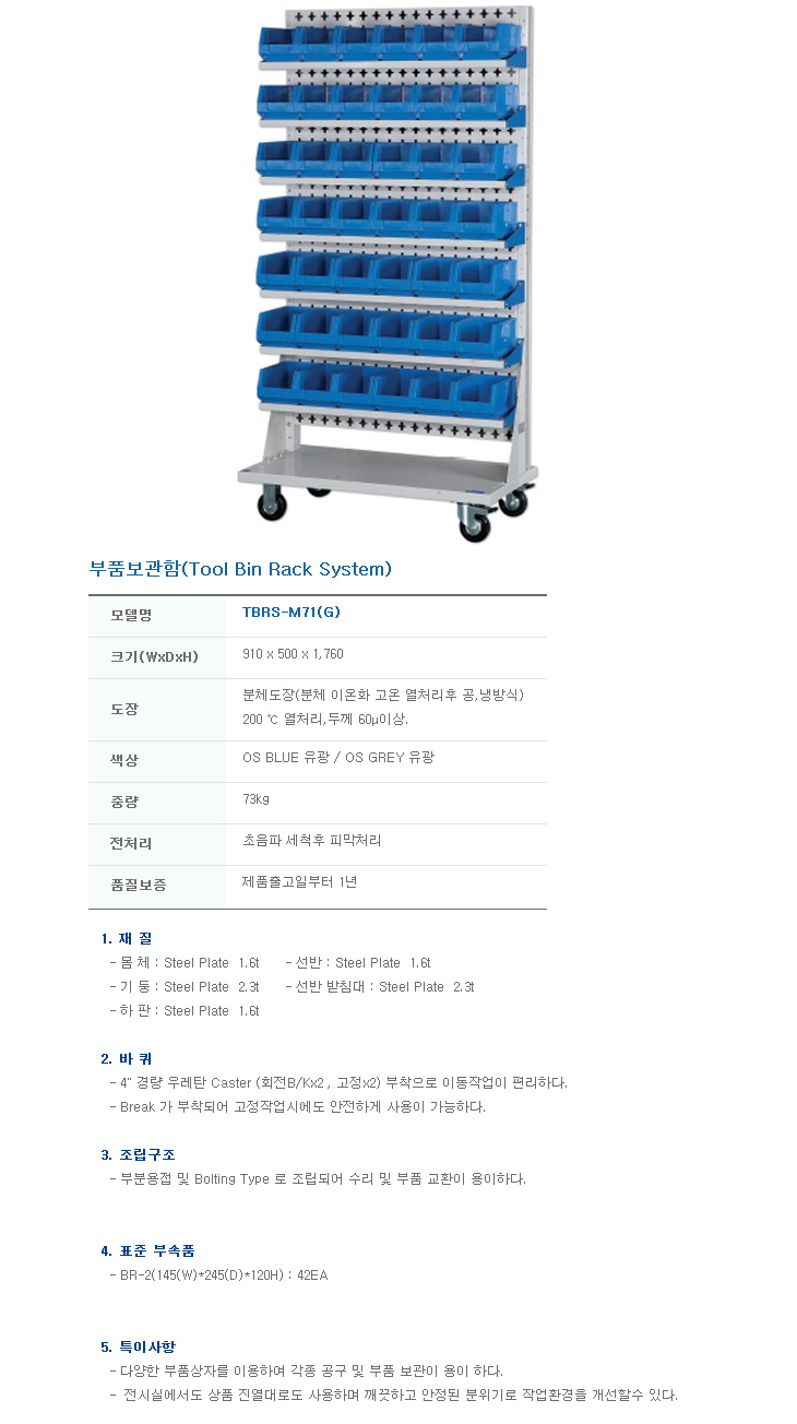 [¿À°ø] ºÎǰº¸°üÇÔ/ºÎǰº¸°ü¹Ú½º(TBRS-M71, 910x500x1760mm, À̵¿Çü)(Tool Bin Rack)