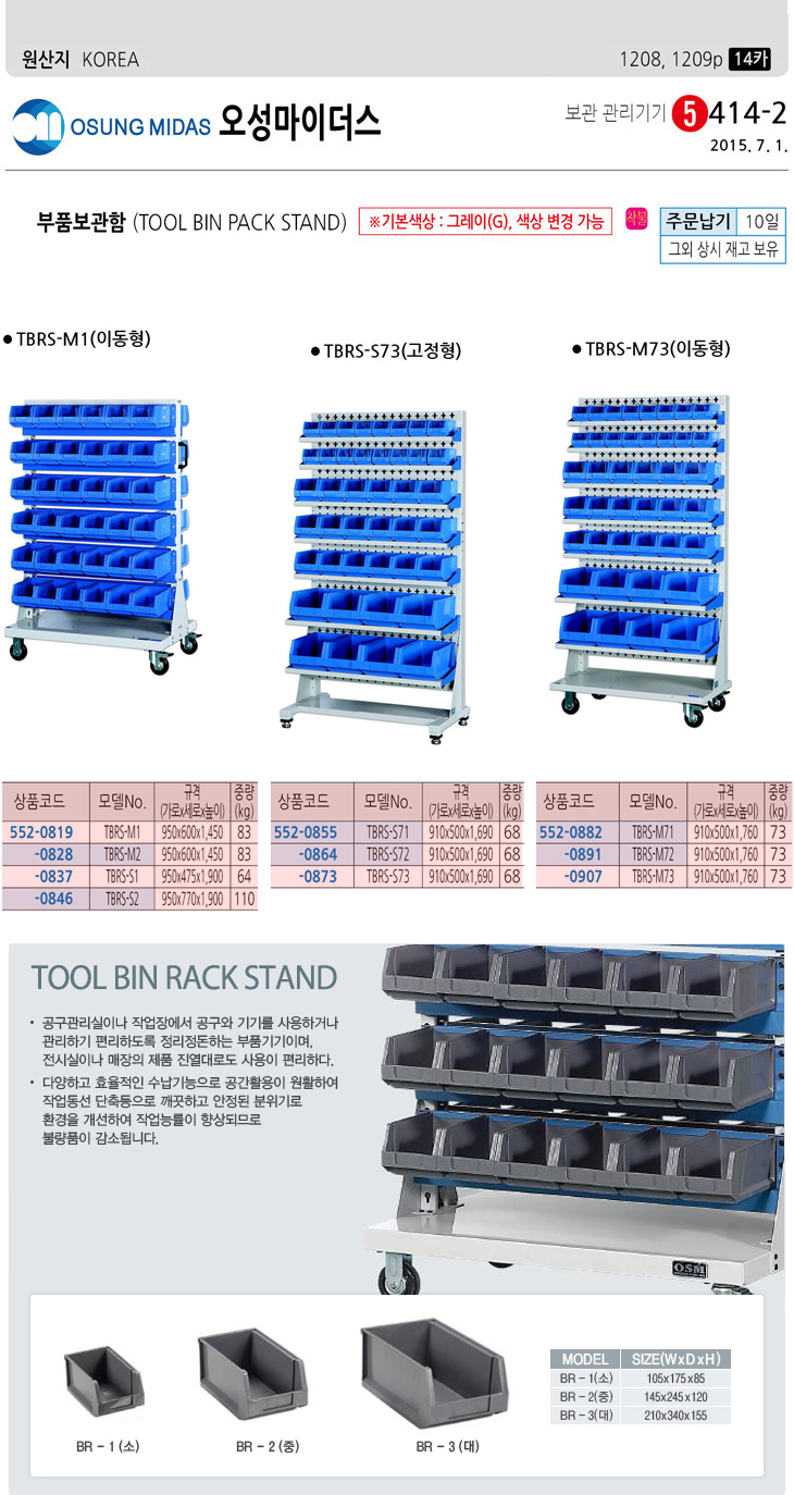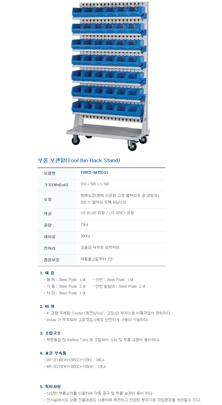 [¿À°ø] ºÎǰº¸°üÇÔ/ºÎǰº¸°ü¹Ú½º(TBRS-M72, 910x500x1760mm, À̵¿Çü)(Tool Bin Rack)