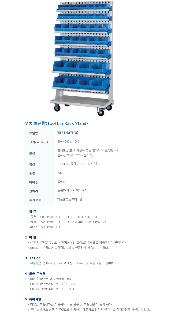 [¿À°ø] ºÎǰº¸°üÇÔ/ºÎǰº¸°ü¹Ú½º(TBRS-M73, 910x500x1760mm, À̵¿Çü)(Tool Bin Rack)