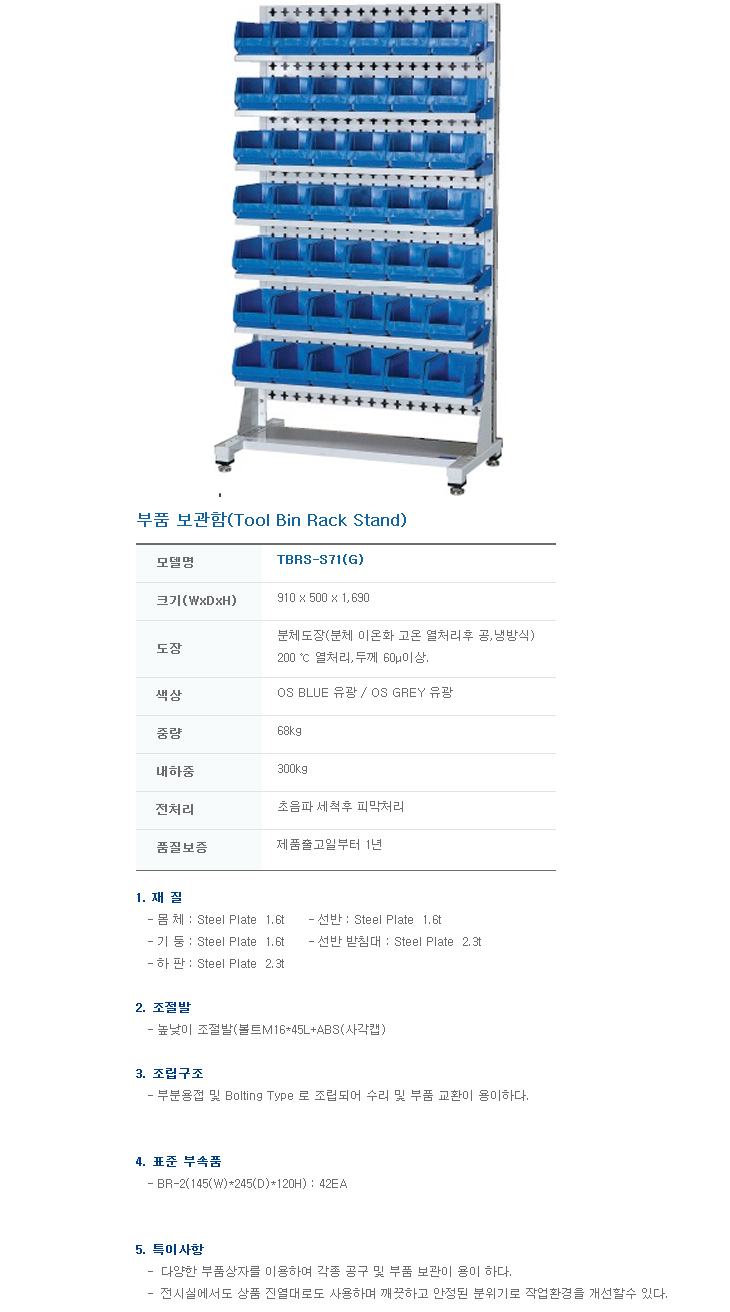 [¿À°ø] ºÎǰº¸°üÇÔ/ºÎǰº¸°ü¹Ú½º(TBRS-S71, 910x500x1690mm, °íÁ¤Çü)(Tool Bin Rack)