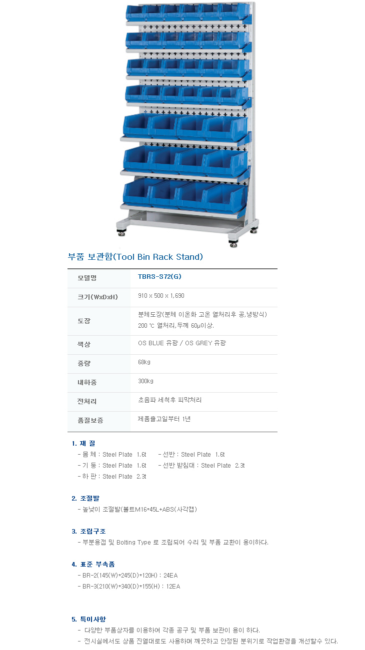 [¿À°ø] ºÎǰº¸°üÇÔ/ºÎǰº¸°ü¹Ú½º(TBRS-S72, 910x500x1690mm, °íÁ¤Çü)(Tool Bin Rack)