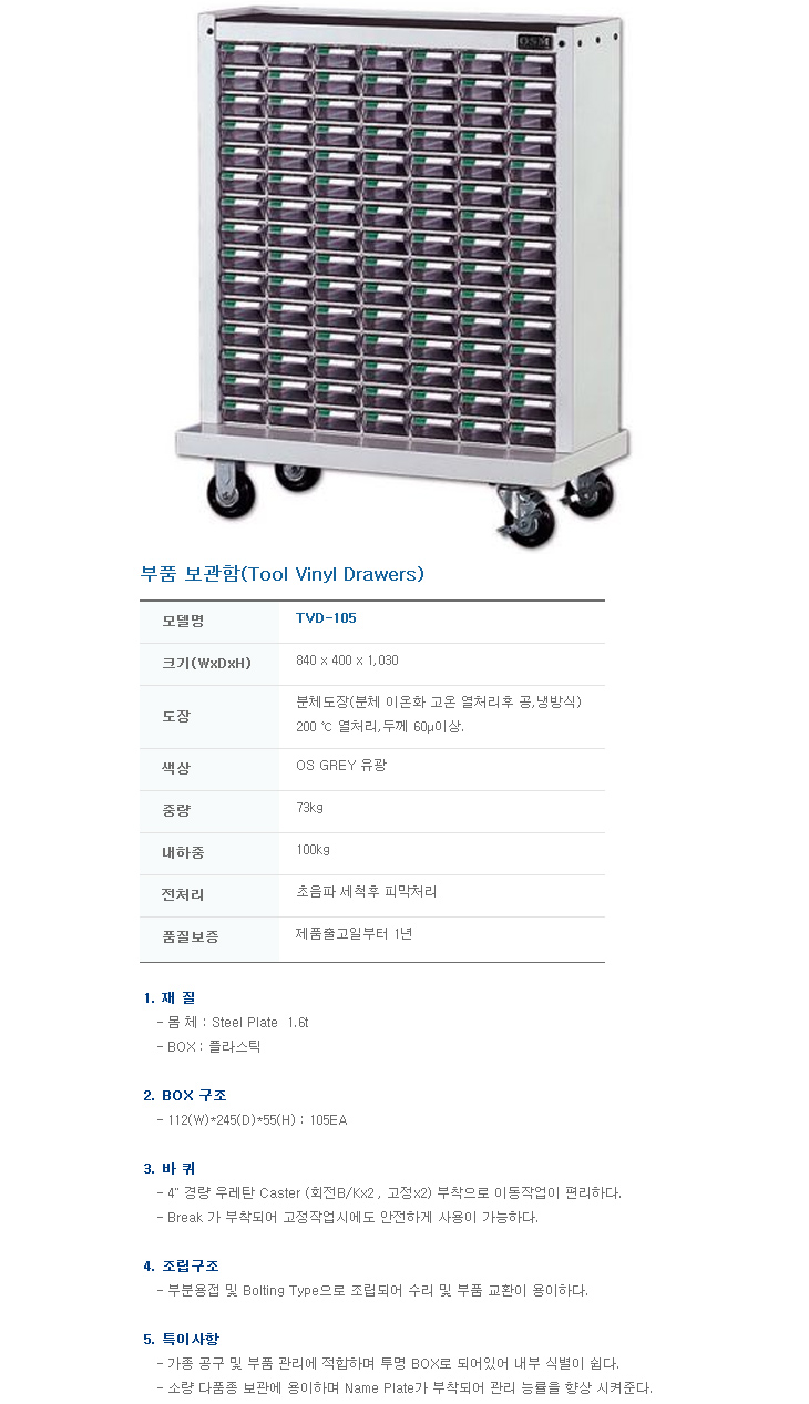 [¿À°ø] ÀüÀÚ ºÎǰº¸°üÇÔ/ºÎǰº¸°ü¹Ú½º(TVD-105, 840x400x1030mm, À̵¿Çü)(Plastic Drawers Storage)