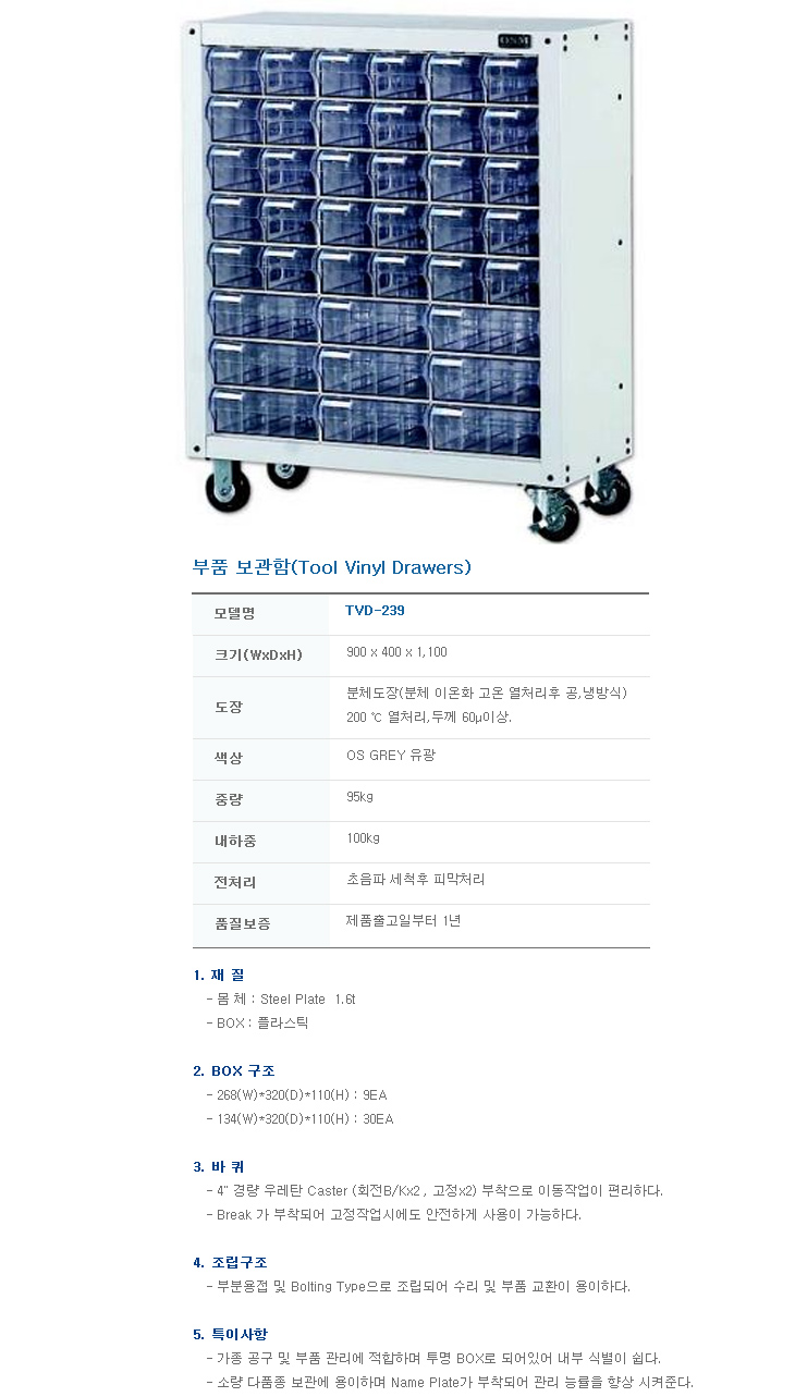 [¿À°ø] ÀüÀÚ ºÎǰº¸°üÇÔ/ºÎǰº¸°ü¹Ú½º(TVD-239, 900x400x1100mm, À̵¿Çü)(Plastic Drawers Storage)