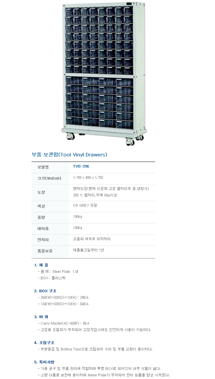 [¿À°ø] ÀüÀÚ ºÎǰº¸°üÇÔ/ºÎǰº¸°ü¹Ú½º(TVD-296, 1150x480x1782mm, À̵¿Çü)(Plastic Drawers Storage)