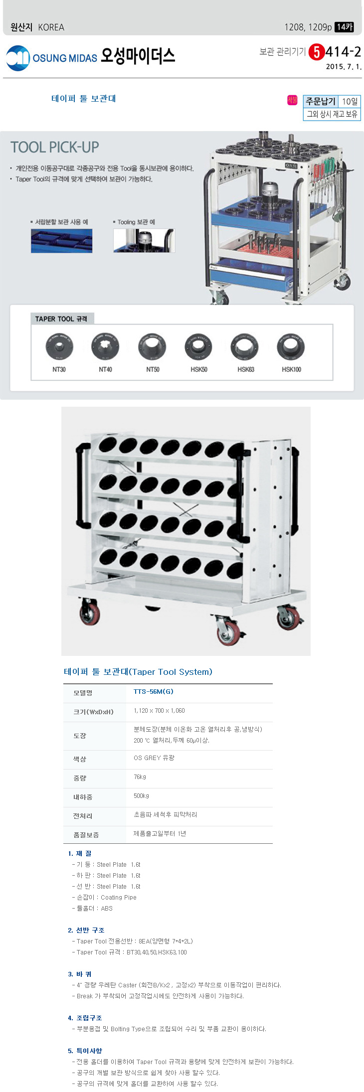 [¿À¼º] Å×ÀÌÆÛÅøº¸°ü´ë/Å×ÀÌÆÛÅøº¸°üÇÔ(TTS-56M, 1120x700x1060mm, À̵¿Çü)(Taper Tool System)