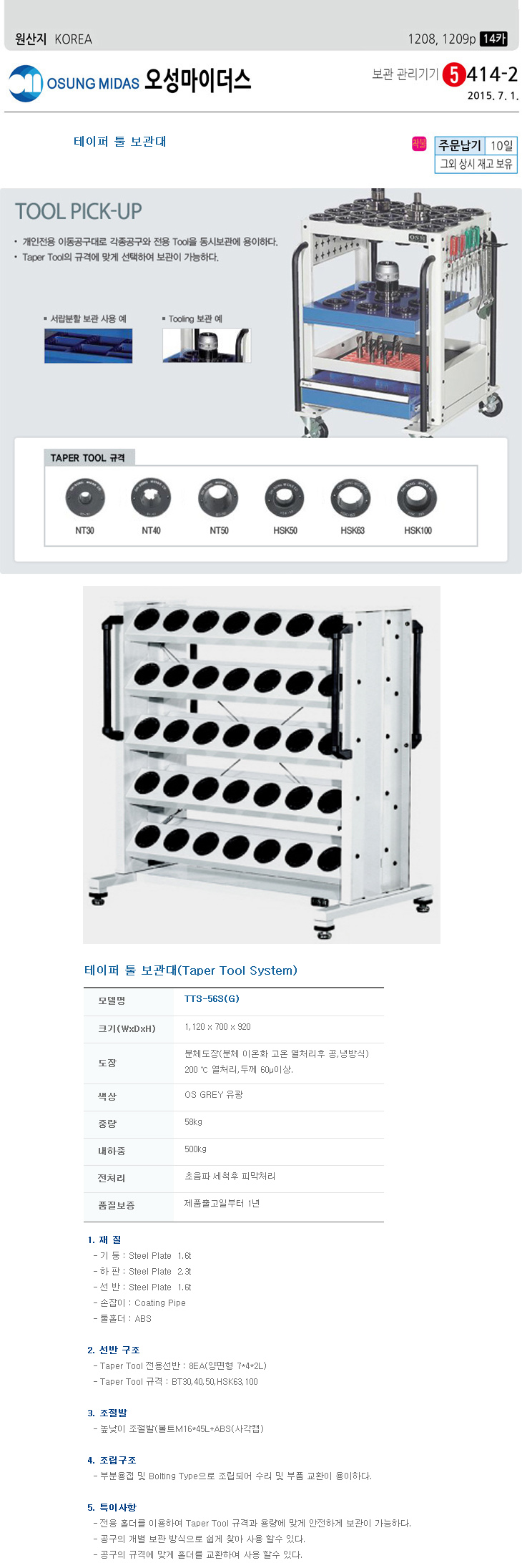 [¿À¼º] Å×ÀÌÆÛÅøº¸°ü´ë/Å×ÀÌÆÛÅøº¸°üÇÔ(TTS-56S, 1120x700x920mm, °íÁ¤Çü)(Taper Tool System)