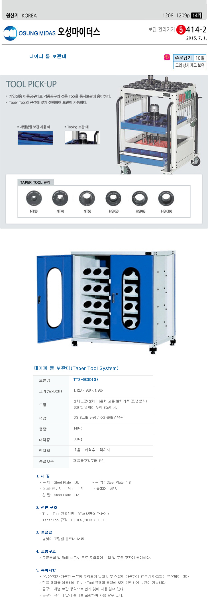 [¿À¼º] Å×ÀÌÆÛÅøº¸°ü´ë/Å×ÀÌÆÛÅøº¸°üÇÔ(TTS-56SD, 1120x700x1205mm, °íÁ¤Çü)(Taper Tool System)