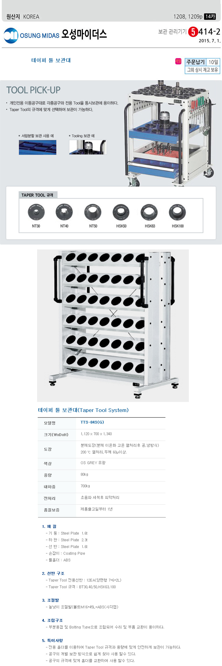 [¿À¼º] Å×ÀÌÆÛÅøº¸°ü´ë/Å×ÀÌÆÛÅøº¸°üÇÔ(TTS-84S, 1120x700x1340mm, °íÁ¤Çü)(Taper Tool System)