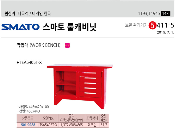 [½º¸¶ÅäÅøÄɺñ³Ý] ÀÛ¾÷´ë(TSA5405T-X, 1372x508x865mm, ¹ÌÁ¶¸³¹ß¼Ûǰ)(Work Bench)=>Á¦Ç°´ÜÁ¾!