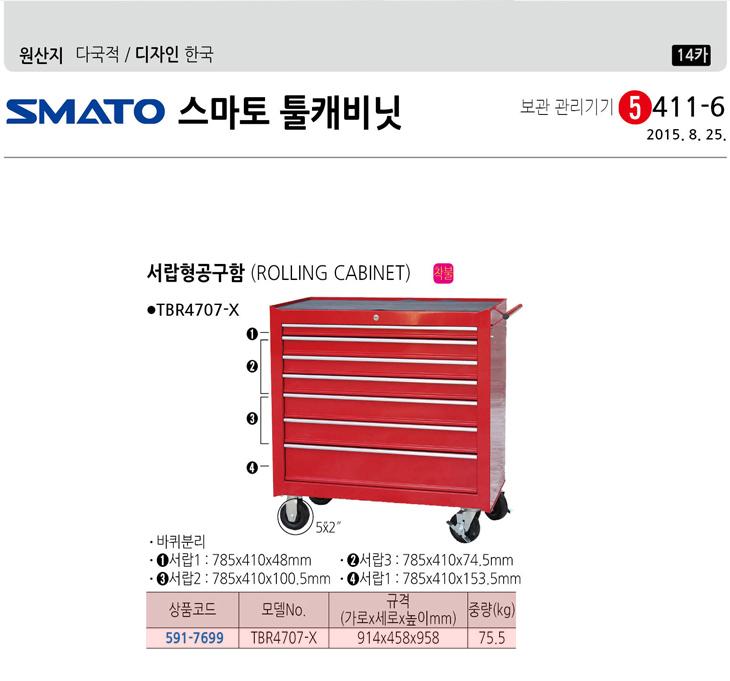 [½º¸¶ÅäÅøÄɺñ³Ý] ¼­¶øÇü°ø±¸ÇÔ(TBR4707-X, 914x458x958mm, ¹ÌÁ¶¸³ÃâÇÏ)(Tool Cart)