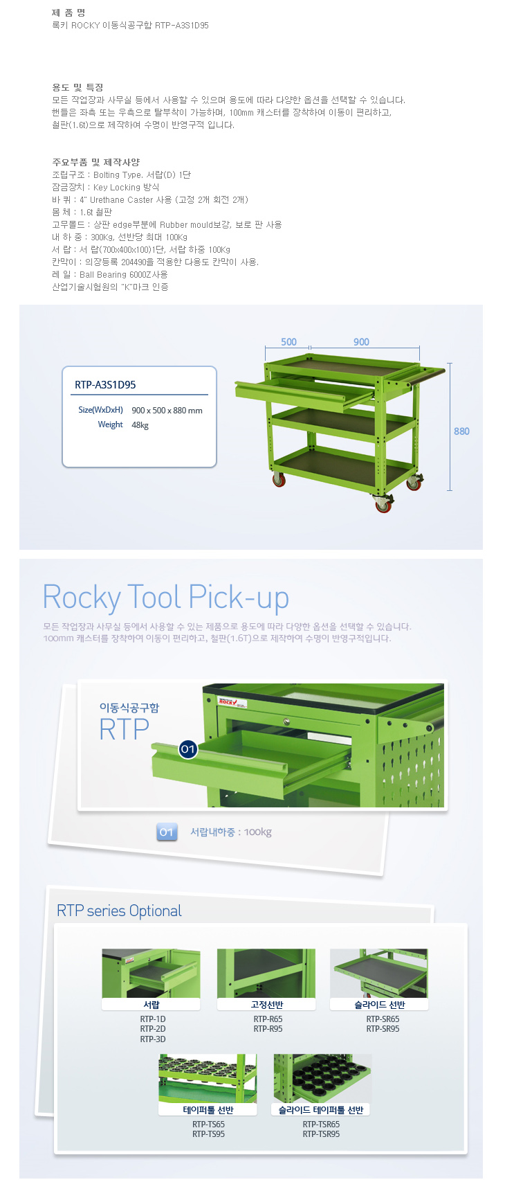 [·ÏŰ/ROCKY] À̵¿½Ä°ø±¸ÇÔ(RTP-A3S1D95, 900x500x880mm)(Tool Pick up)
