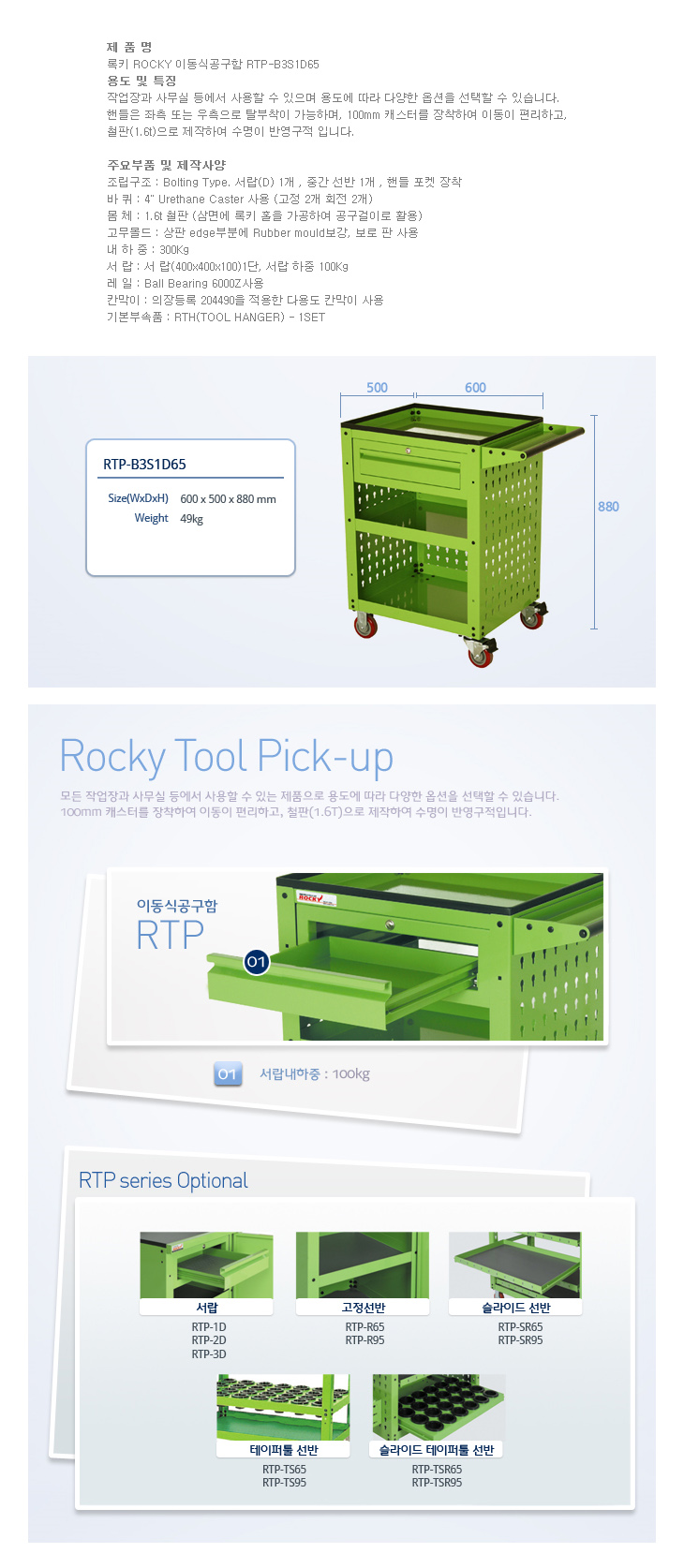 [·ÏŰ/ROCKY] À̵¿½Ä°ø±¸ÇÔ(RTP-B3S1D65, 600x500x880mm)(Tool Pick up)