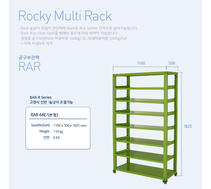 [·ÏŰ/ROCKY]°ø±¸º¸°ü·¢(RAR-6R, °íÁ¤½Ä¼±¹Ý 6°³, 1100x500x1825mm)(Multi Rack)