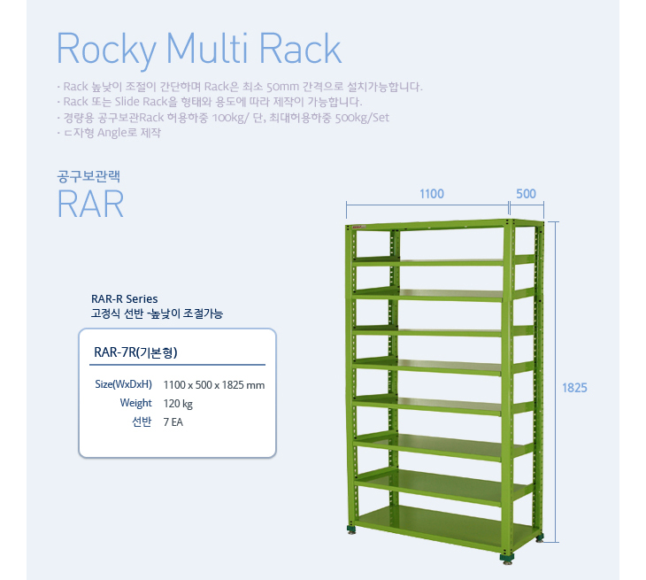 [·ÏŰ/ROCKY]°ø±¸º¸°ü·¢(RAR-7R, °íÁ¤½Ä¼±¹Ý 7°³, 1100x500x1825mm)(Multi Rack)