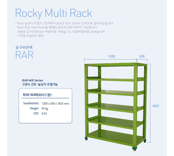 [·ÏŰ/ROCKY]°ø±¸º¸°ü·¢(RAR-W4R, ¿ÍÀÌµå °íÁ¤½Ä¼±¹Ý 4°³, 1200x500x1825mm)(Multi Rack)