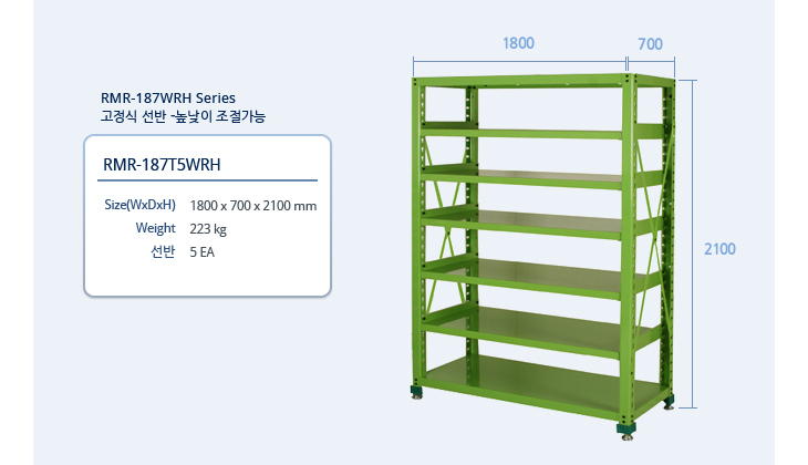 [·ÏŰ/ROCKY]Áß·®Çü ³ô°í ³ÐÀºÆø °ø±¸º¸°ü·¢(RMR-187T5WRH, °íÁ¤½Ä¼±¹Ý 5°³, 1800x700x2100mm)(Multi Rack)