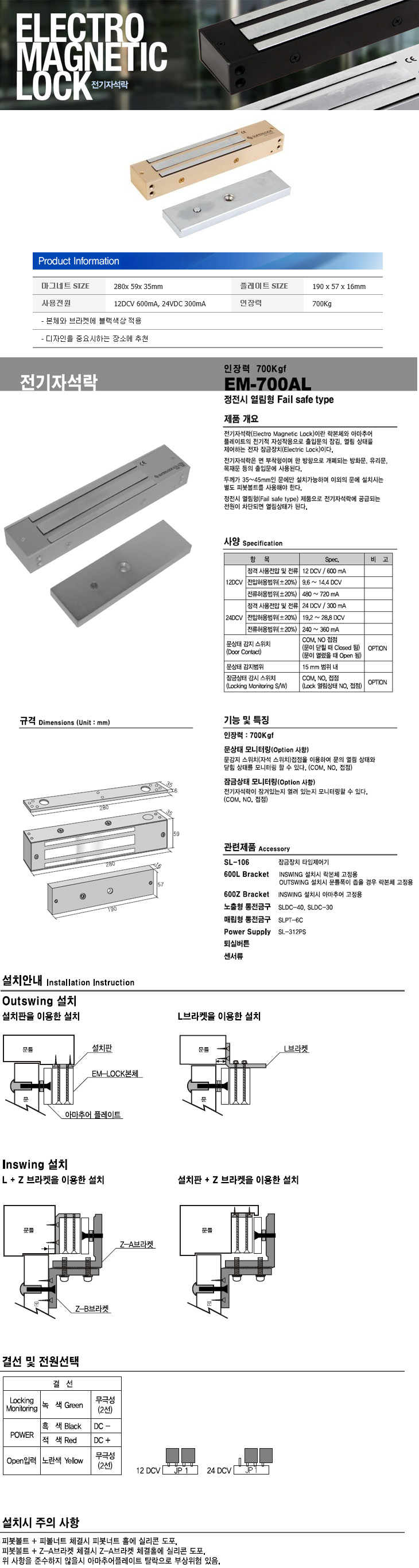 [SU] Àü±âÀÚ¼®¶ô/ÀÌ¿¥¶ô(EM-700 GOLD, 280x59x35mm, DC12V/24V, 700Kg, ¾Ë·ç¹Ì´½ EM-Lock)(Electro Magnetic Lock)