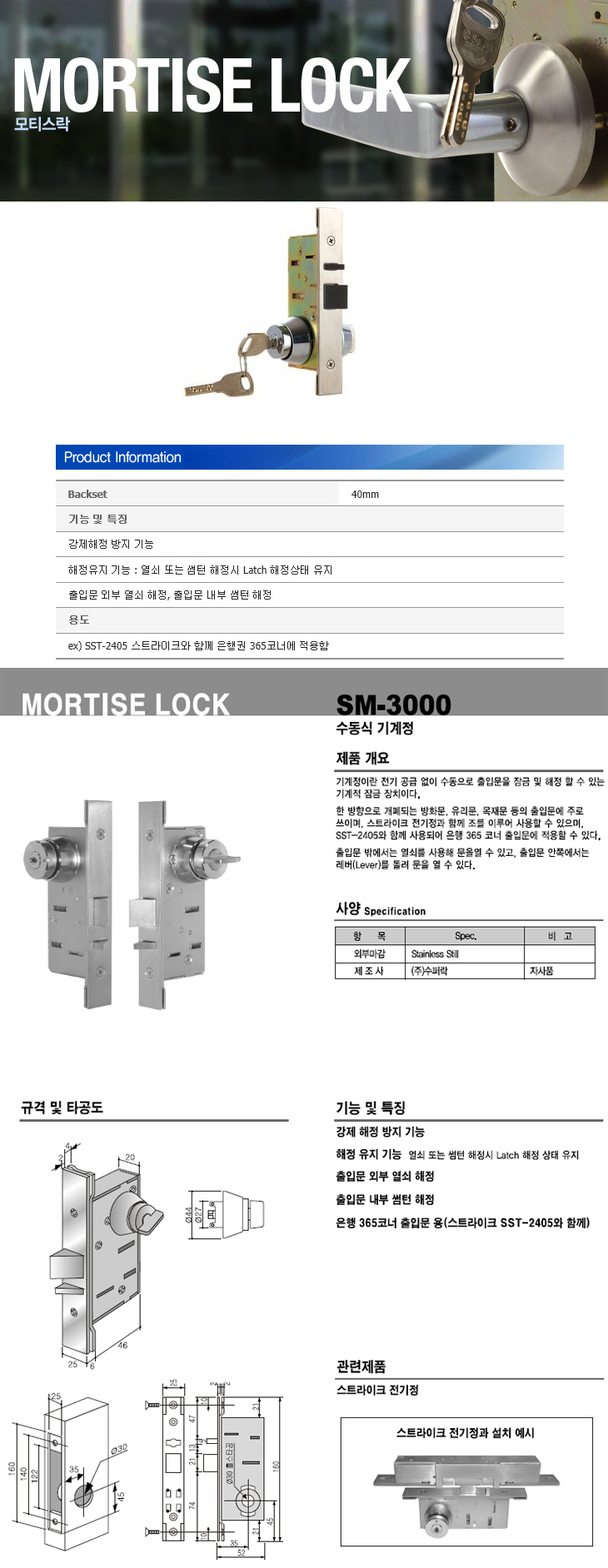 [SU] ¼öµ¿½Ä±â°èÁ¤(SM-3000, 40mm)(Mortise Lock)
