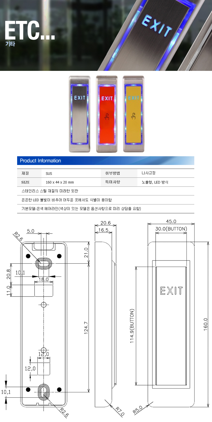 [SU] ³ëÃâÇü Åð½Ç¹öư(OS-160L, ÅÍÄ¡½Ä, LEDŸÀÔ, 160x44x20mm)(Exit Button)
