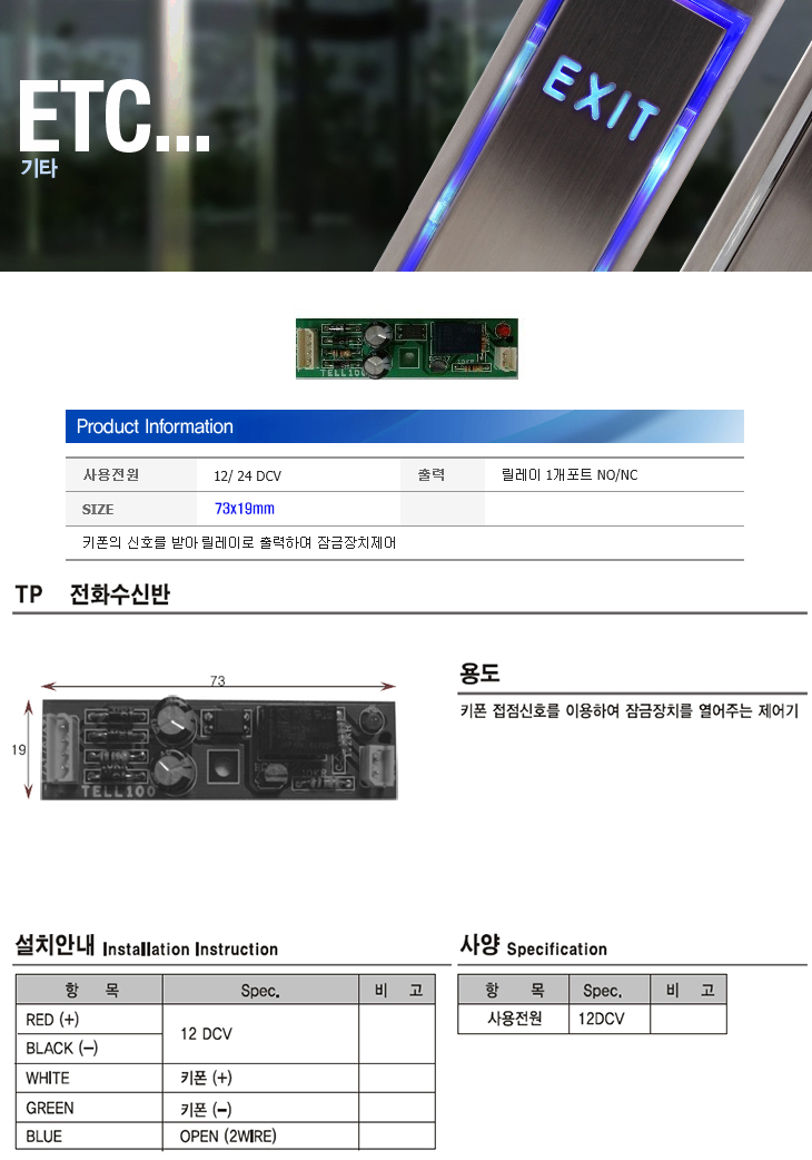 [SU] ÀüÈ­¼ö½Å¹Ý/ŰÆùÀÇ ½ÅÈ£¸¦ ¹Þ¾Æ ¸±·¹ÀÌ·Î Ãâ·ÂÇÏ¿© Àá±ÝÀåÄ¡Á¦¾î(TP, DC12V/24V)