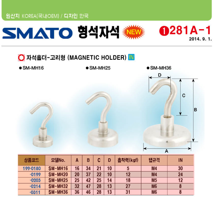 [SMATO] ½º¸¶Åä ÀÚ¼®È¦´õ °í¸®Çü(SM-MH36, M6±Ô°Ý, 36x46mm 31Kgf 8°³¹­À½)(Magnetic Holder)