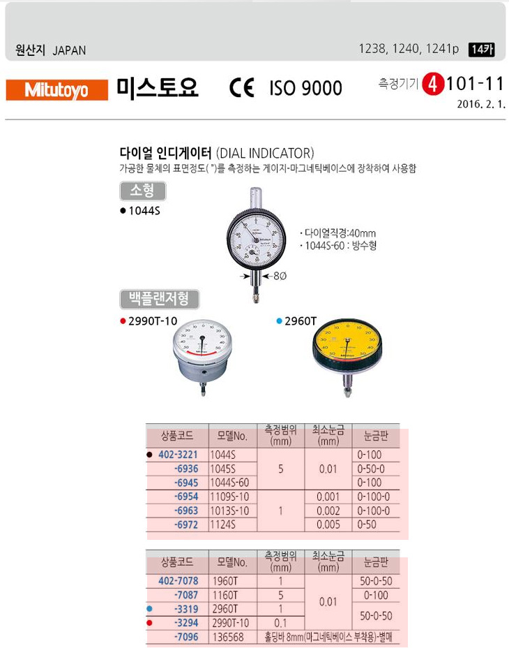 [¹Ì½ºÅä¿ä/MITUTOYO] ´ÙÀ̾ó Àεð°ÔÀÌÅÍ(1109S-10, ¼ÒÇü, ÃøÁ¤¹üÀ§:1mm, ÃÖ¼Ò´«±Ý:0.001mm)(Dial Indicator)(ÁÖ¹®Àü Àç°íÈ®ÀÎ)