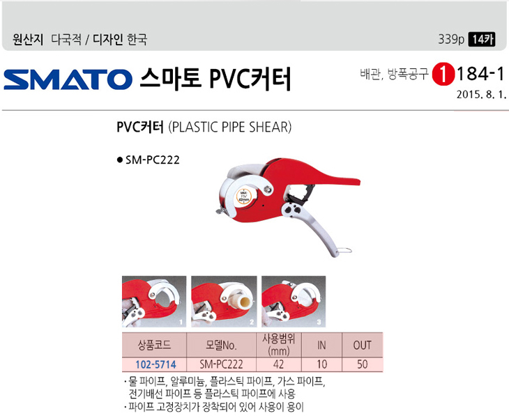 [SMATO] PVCÄ¿ÅÍ/PVCıŸ/ÇÃ¶ó½ºÆ½Ä¿ÅÍ(SM-PC222, 42ÆÄÀÌ ÆÄÀÌÇÁÀý´Ü, ¿öÅÍÆÄÀÌÇÁ/¾Ë·ç¹Ì´½/ÇÃ¶ó½ºÆ½/°¡½º/Àü±âÆÄÀÌÇÁ Àý´Ü)(Plastic Pipe Shear)