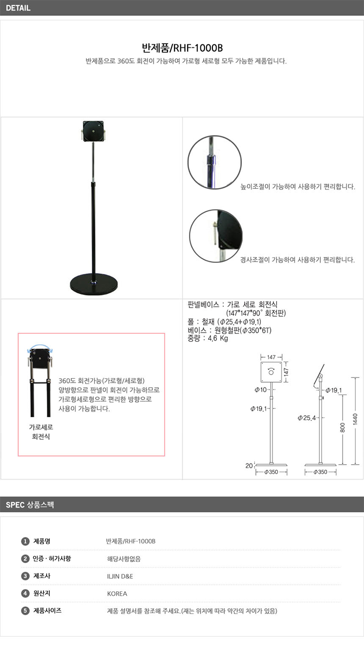 [ÀÏÁø] ½ºÅĵå ÇÁ·¹ÀÓ ¹ÝÁ¦Ç°(RHF-1000B, ³ôÀÌ:1440mm, ½ºÆ¿, º£À̽º:¿øÇüöÆÇ, °ËÁ¤µµÀå)