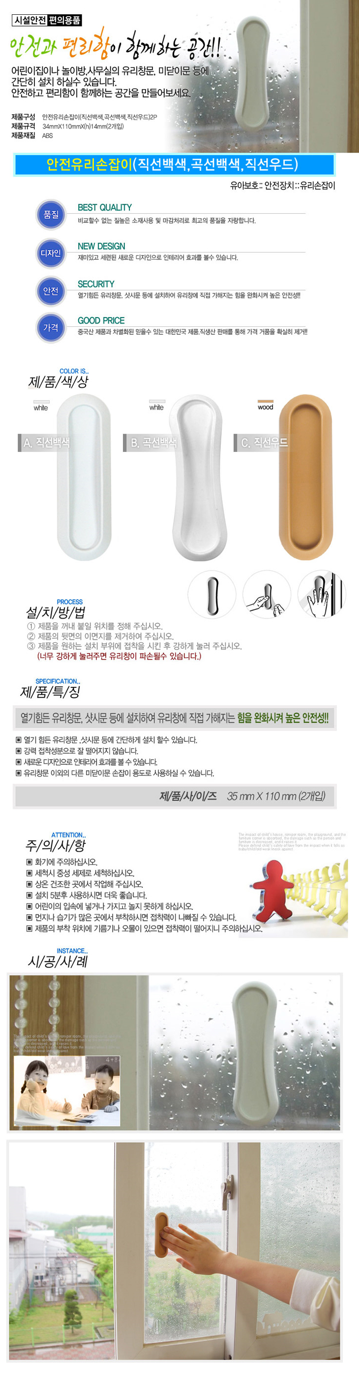 [LP] °î¼±¹é»ö ¾ÈÀüÀ¯¸®¼ÕÀâÀÌ2°³¹­À½(34x110x14mm)(Safety Glass Handle/Sliding Door Handle)