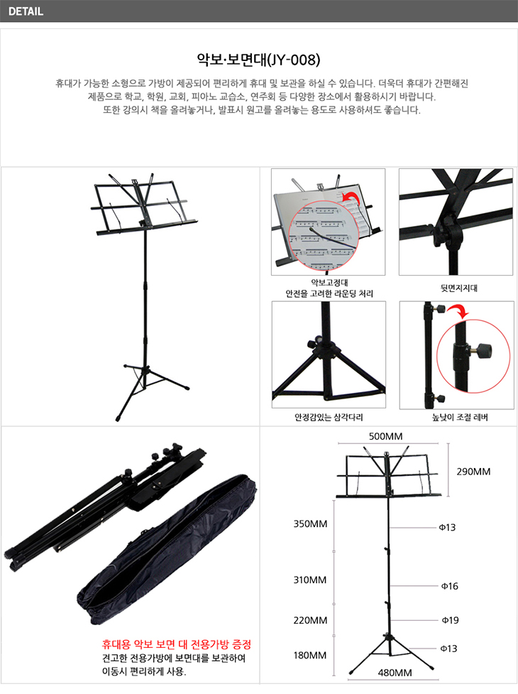 [ÀÏÁø] ¾Çº¸ º¸¸é´ë(JY-008, ÆÇÅ©±â:500x290mm, º¸±ÞÇü Á¢ÀÌ½Ä º¸¸é´ë, ³ôÀÌ:1060mm, Àü¿ë°¡¹æÆ÷ÇÔ)(Music Stand)