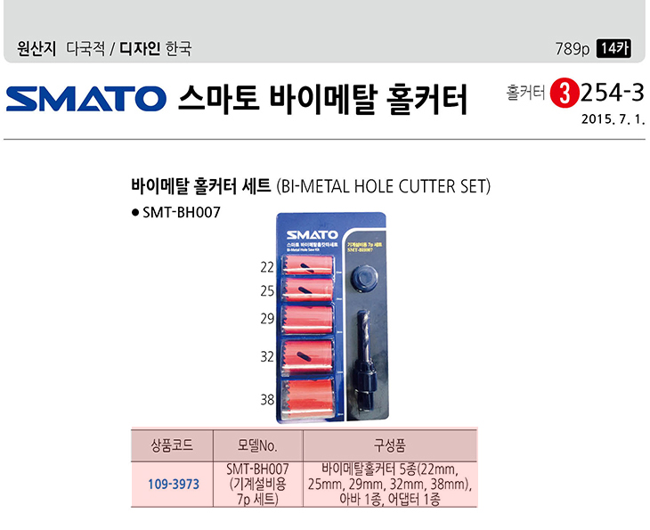 [½º¸¶Åä] ¹ÙÀ̸ÞŻȦĿÅͼ¼Æ®(SMT-BH007, ±â°è¼³ºñ¿ë 7°³ ¼¼Æ®, ȦīŸ 22/25/29/32/38ÆÄÀÌ 5Á¾ + ¾Æ¹Ù1Á¾+¾î´ðÅÍ 1Á¾)(Bi-metal Cutter Set)